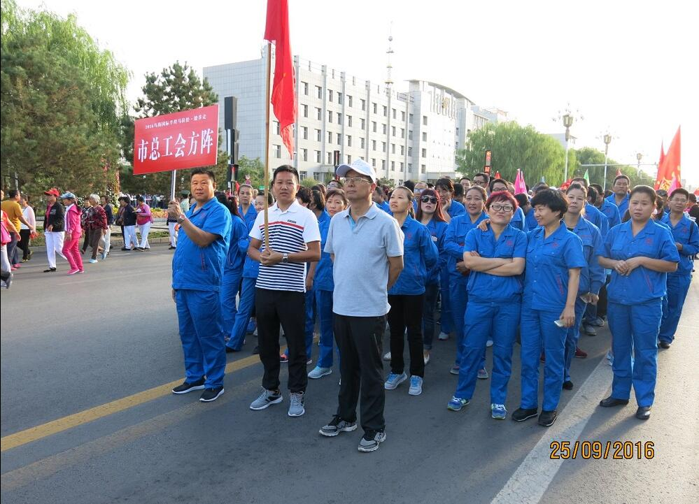 烏海市總工會組織2500余名職工參加2016烏海國際半程馬拉松賽萬人健步走活動