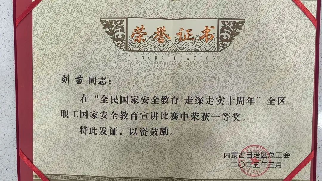 近日,在自治區(qū)職工國家安全教育宣講比賽中,黃河集團(tuán)參賽選手劉苗表現(xiàn)出色,憑借扎實(shí)的知識(shí)儲(chǔ)備和出色的演講能力榮獲一等獎(jiǎng)。